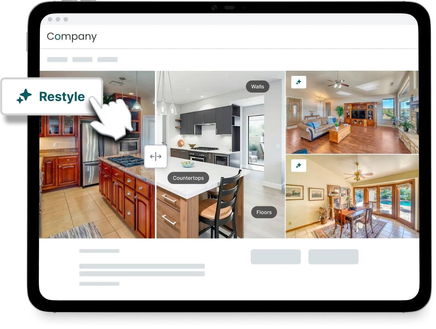 Buyers can instantly redesign rooms with real flooring, paint, and design styles right in the listing photo which helps build a powerful connection to the home.
